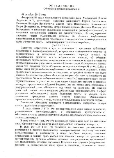 Кто же нас все-таки всех заказал?1 679 Среда, 27 ноября 2013, 00:20 Кто же нас все-таки всех заказал? Боже, какими вы были наивными! Как же вы молоды были тогда! Удивительно, но никто не усомнился в тексте предыдущего моего блога (излишне говорить, посвященного выборной тематике). Никто не возразил, что никакого социологического исследования в действительности не проводилось и никто не изучал общественное мнение одинцовцев по поводу любви к кандидатам в депутаты РайСовета. Поверили, что опрос общественного мнения проводился? Напрасно. Я вот не постеснялся и съездил в Институт, от имени которого, как будто, были проведены исследования. Часа полтора общался со славным коллективом этого института и с самим директором, — никто этот опрос не проводил, и вообще этот институт что-то исследовал в Московской области (даже не в Одинцовском районе) лет 7 назад. Официальную бумагу о том, что исследования не проводились, институт направил в Территориальную избирательную комиссию. Там, однако, этому не удивились, но пообещали разобраться. Разобрались, конечно, но очень и очень специфически. То есть щуку просто таки утопили в воде. Возникает самый главный вопрос — кто? Кто все это заказал? Кто отшлепал необходимый текст и передал его в газету, которая мгновенно опубликовала. А если учесть точность опубликованного «прогноза», то очевидно, что в состав штаба, организовавшего массовый вброс бюллетеней, входит и то лицо, составившее текст фальшивки. А кто начальник этого штаба, наш местный главнокомандующий? Нетрудно узнать, кто является учредителем Одинцовской недели и по чьему велению редакция публикует важный, но не проверенный материал перед самыми что ни на есть выборами. Юридическое лицо, так сказать, известно. А физическое? Очевидно, трогать его было весьма опасно, потому как и прокурор и судья просто спасовали. И как могли ситуацию прикрыли, а не раскрыли. Вот ответ из Одинцовской прокуратуры: Если с прокурором что-то со временем прояснилось (или, точнее, наоборот, только затуманилось из-за крышевания нелегального бизнеса), то с судьей вопрос так и остался открытым. Судья Лодочкин отказался принять заявление к рассмотрению и заставить его рассмотреть не удалось. Почему? Думайте сами, не все мне одному. Вот этот документ: Правда, для нынешнего повествования это же не столь уж и важно. Пока нам надо точно разобраться — выборы прошли честно? Или нет. Нынешние так называемые депутаты — легитимны или самозванцы? Те изменения, которые они вносят в Устав и прочее — законны или все это результат узурпации власти? Если это именуется захватом власти (естественно, с точки зрения Конституции РФ), то все действия так называемых депутатов — законны или с правовой позиции — ничтожны? Но мы немного отвлеклись от темы. Вернемся к ней и поразмышляем капельку. Что же все-таки следует из того факта, что социоисследования не проводились, а результат выборов оказался предугадан с большой точностью. Какие мысли на этот счет у читателей? /Сергей Кошовский/ |