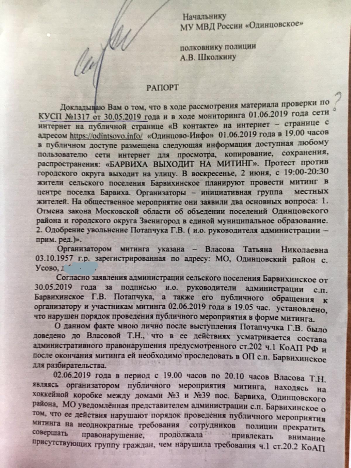 Беспредел восстановлен!4 597 (+17) Суббота, 6 июля 2019, 13:43 Месяц назад мы праздновали маленькую победу, когда при рассмотрении дела в Одинцовском городском суде судья Модяков вернул материалы «правоограничителям» в лице сотрудников ОП с. п. Барвихинское. Порадовало то, что судья хотя бы не осмелился принимать решение на основании откровенной «лажи».