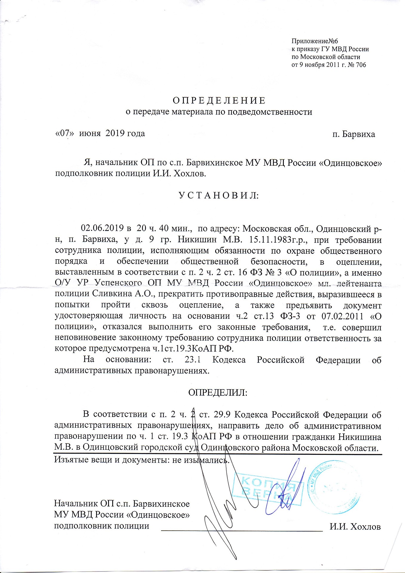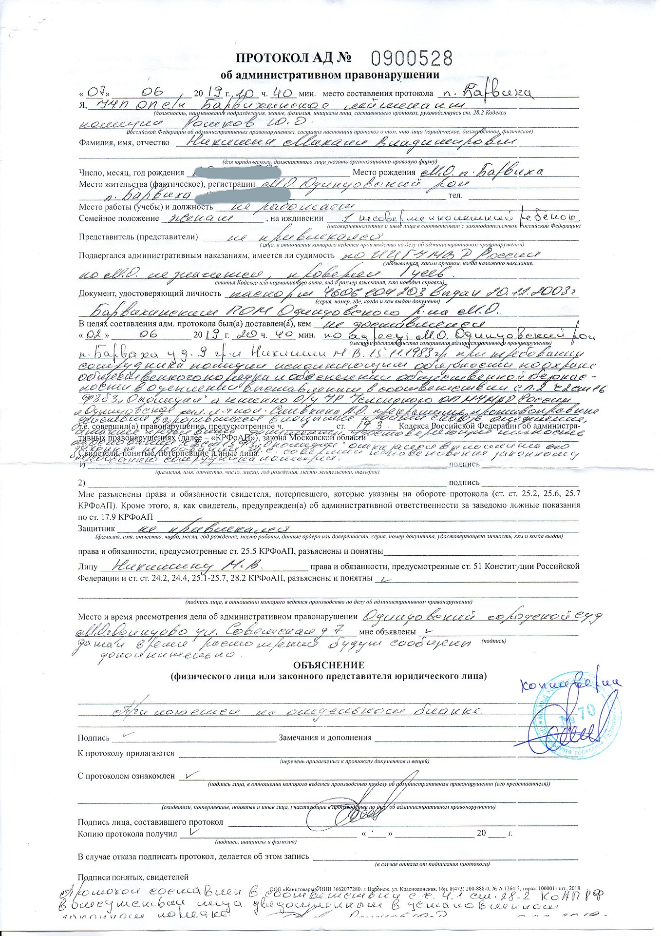 Спустя месяц доблестные полицейские доработали материалы, «состряпав» новый протокол и собрав показания со «свидетелей». Вынося решение, судья Модяков на этот раз не смутился тем, что протокол составлен в отсутствие лица, привлекаемого к административной ответственности, и посчитал, что «скриншот» с чьего-то мобильного телефона о произведенном исходящем звонке по некоему номеру является подтверждением о надлежащем уведомлении. Эк как всё упростилось в нашем «сказочном государстве»! Не смутило Модякова и то, что все свидетели оказались сотрудниками полиции, а их показания написаны как под диктовку. Не проникся он и просмотренной видеозаписью, представленной в свою защиту журналистом Никишиным, которая полностью опровергает наличие состава правонарушения, указанного в протоколе, а именно Цитата: …при требовании сотрудника полиции, исполяющим обязанности по охране общественного порядка и обеспечения общественной безопасности, в оцеплении, выставленным в соответствии с п.2 ч.2 ст.16 ФЗ №3 «О полиции», а именно О/У УР Успенского ОП МУ МВД России «Одинцовское» мл. лейтенанта полиции Сливкина А. О., прекратить противоправные действия, выразившееся в попытки пройти сквозь оцепление, а также предъявить документ, удостоверяющая личность на основании ч.2 ст.13 ФЗ-3 от 07.02.2011 «О полиции», отказался выполнить его законные требования… ![]()