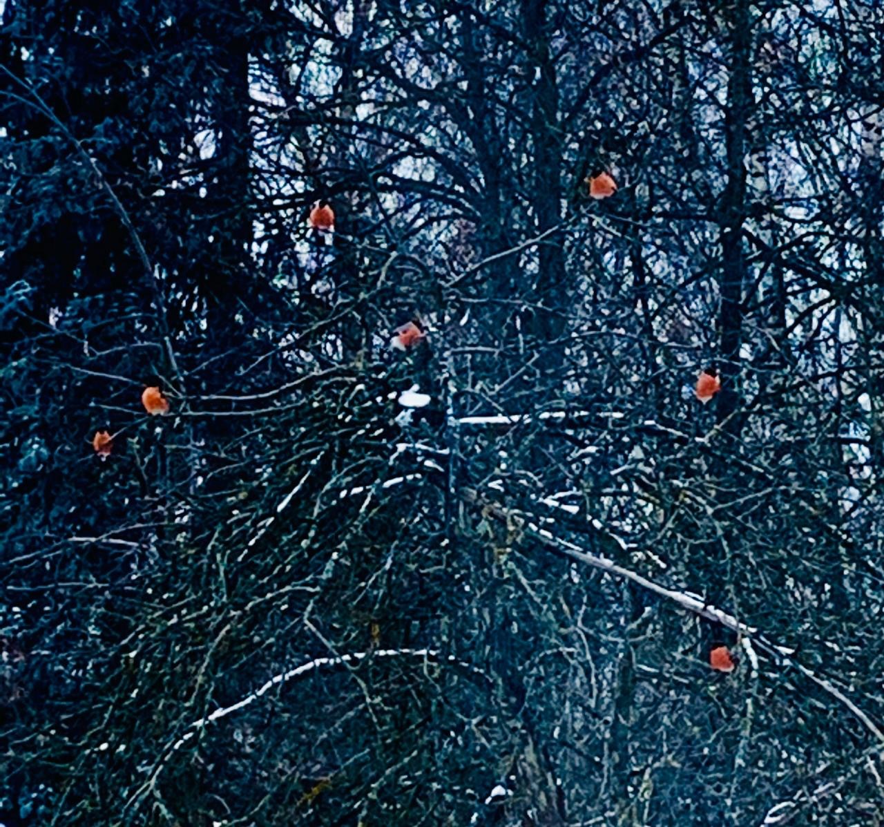 Стаю свиристелей видел — наверное, отдыхали между набегами на рябины.