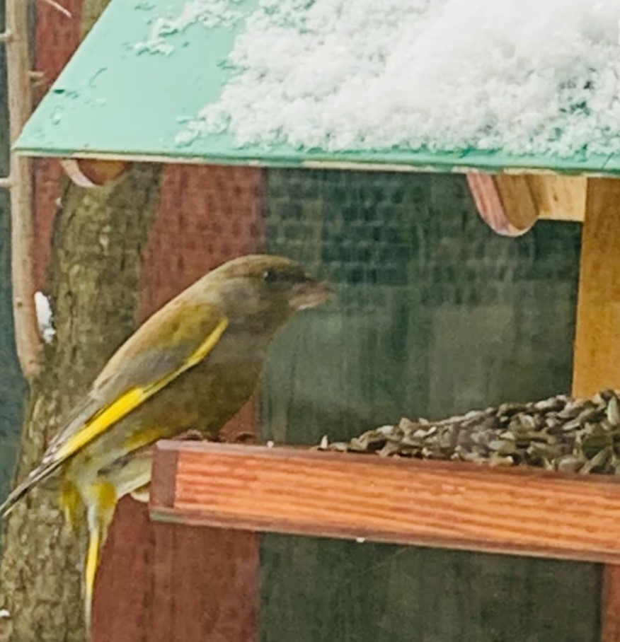 Синицы и воробьи, самом собой; свиристели, дубоносы, лазоревки, черноголовые гаички, зеленушки, чечётки, снегири.