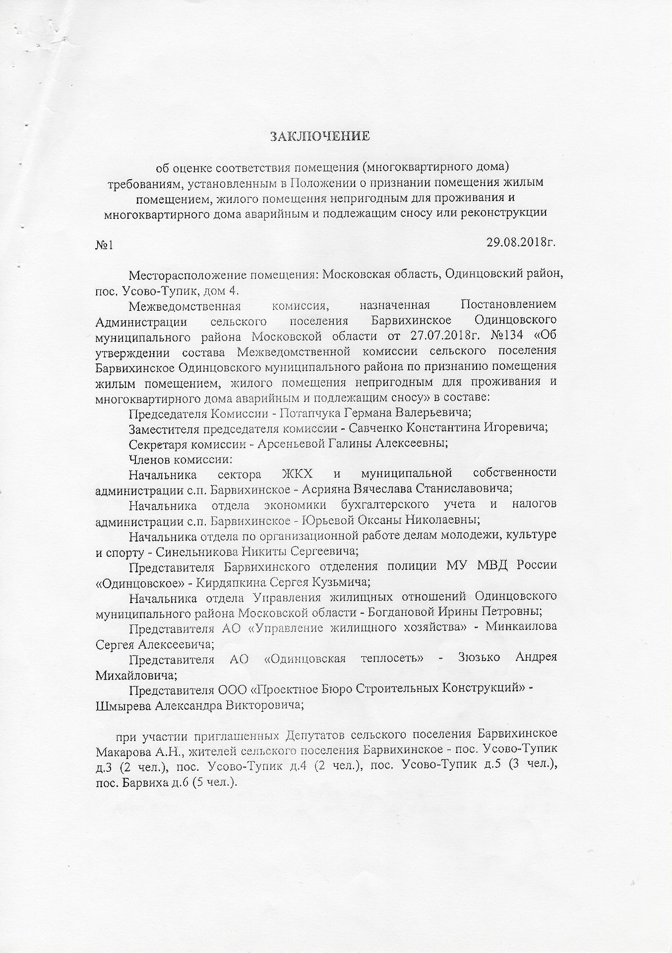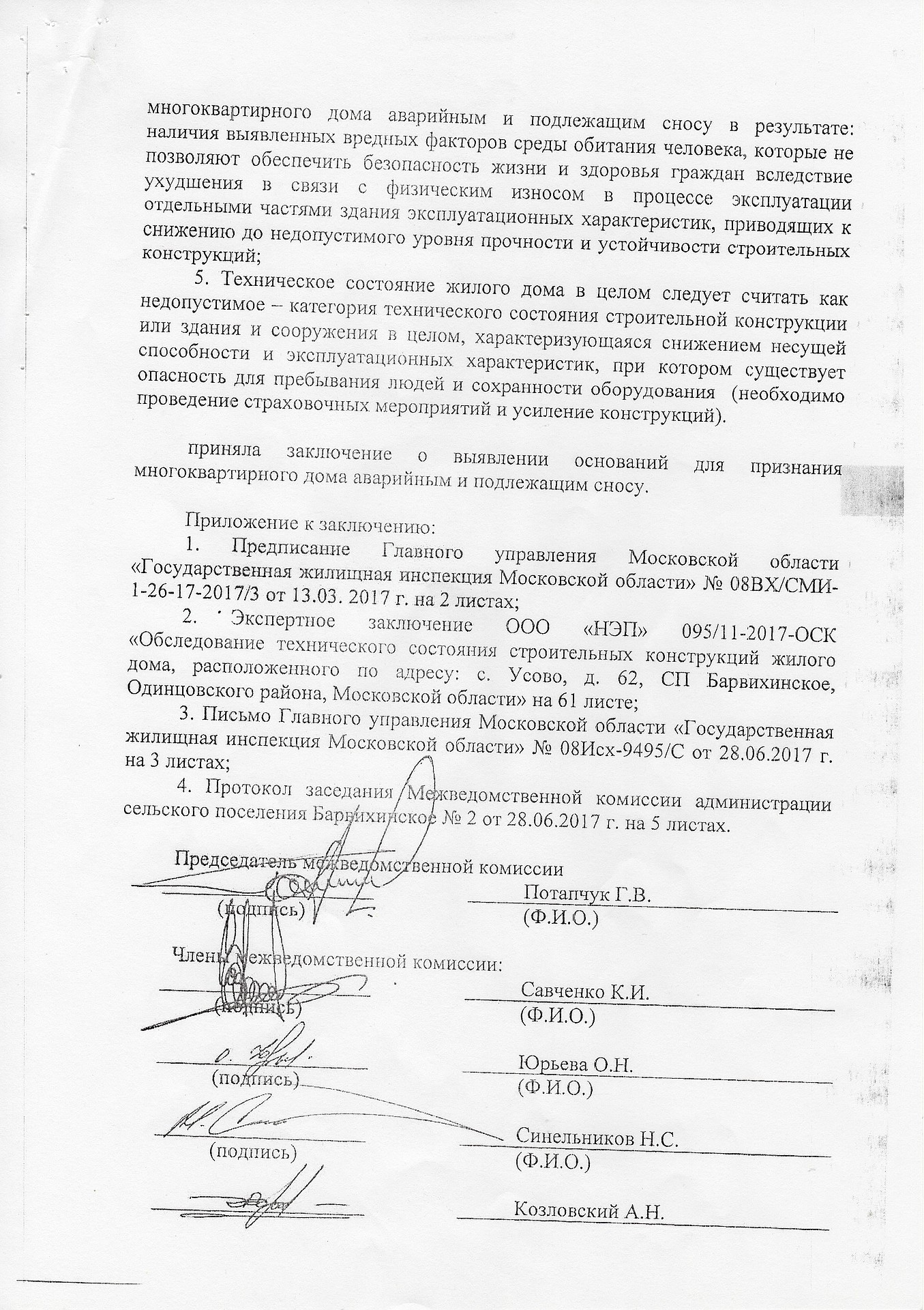 В этом же письме Сергей Теняев задел вскользь и еще одну важную для жителей поселения тему, которую администраторы и Макаров А. Н. пытались использовать против него. Глава потребовал от Потапчука представить в соответствии с п.49 «Положения о признании помещения жилым помещением, жилого помещения непригодным для проживания, многоквартирного дома аварийным и подлежащим сносу или реконструкции, садового дома жилым домом и жилого дома садовым домом» (утв. Постановлением Правительства РФ от 28.01.2006 №47) необходимые решения о признании д. №4 в п. Усово-Тупик и д. №62 в с. Усово аварийными и подлежащими сносу или реконструкции.