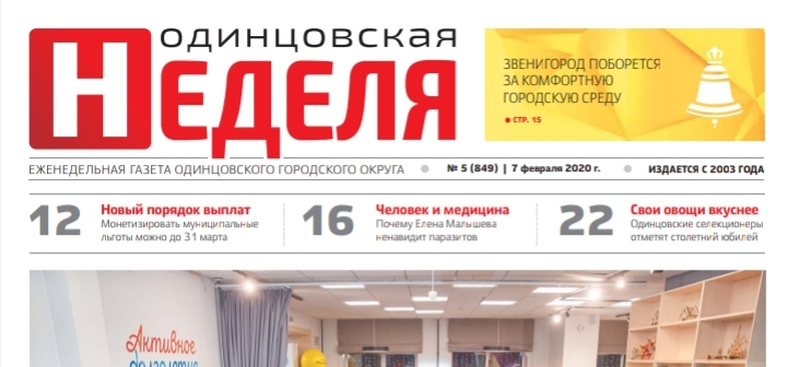 Вот так выглядит периодическое издание еженедельник «Одинцовская Неделя» (тираж 100 000 экз.):